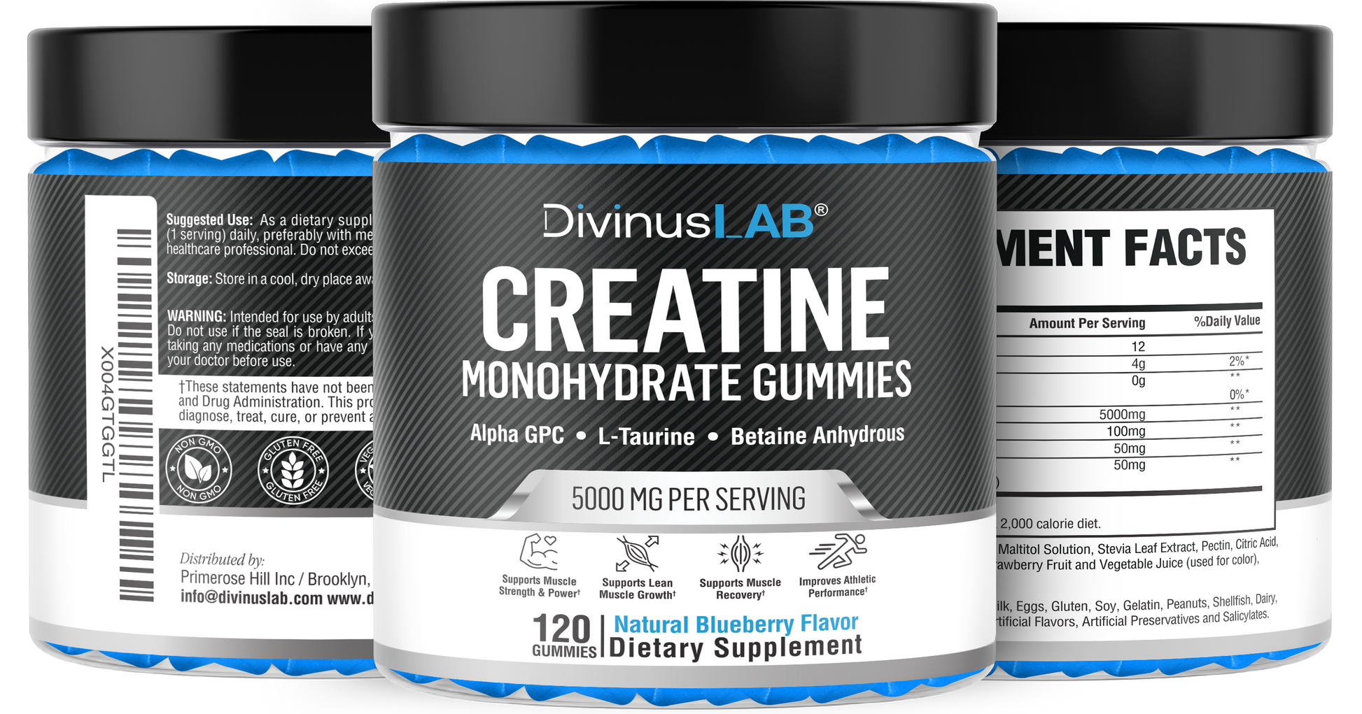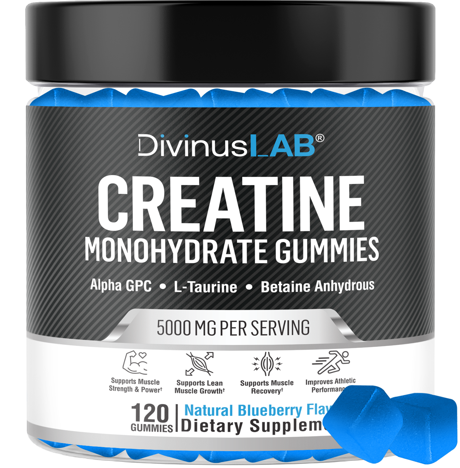 This product contains 120 blueberry-flavored gummies, each serving providing 5 grams (5000 mg) of Creatine Monohydrate. Offered in a convenient chewable format, these gummies are designed for individuals who prefer an alternative to powders or capsules. Each pack contains approximately 30 servings (4 gummies per serving).